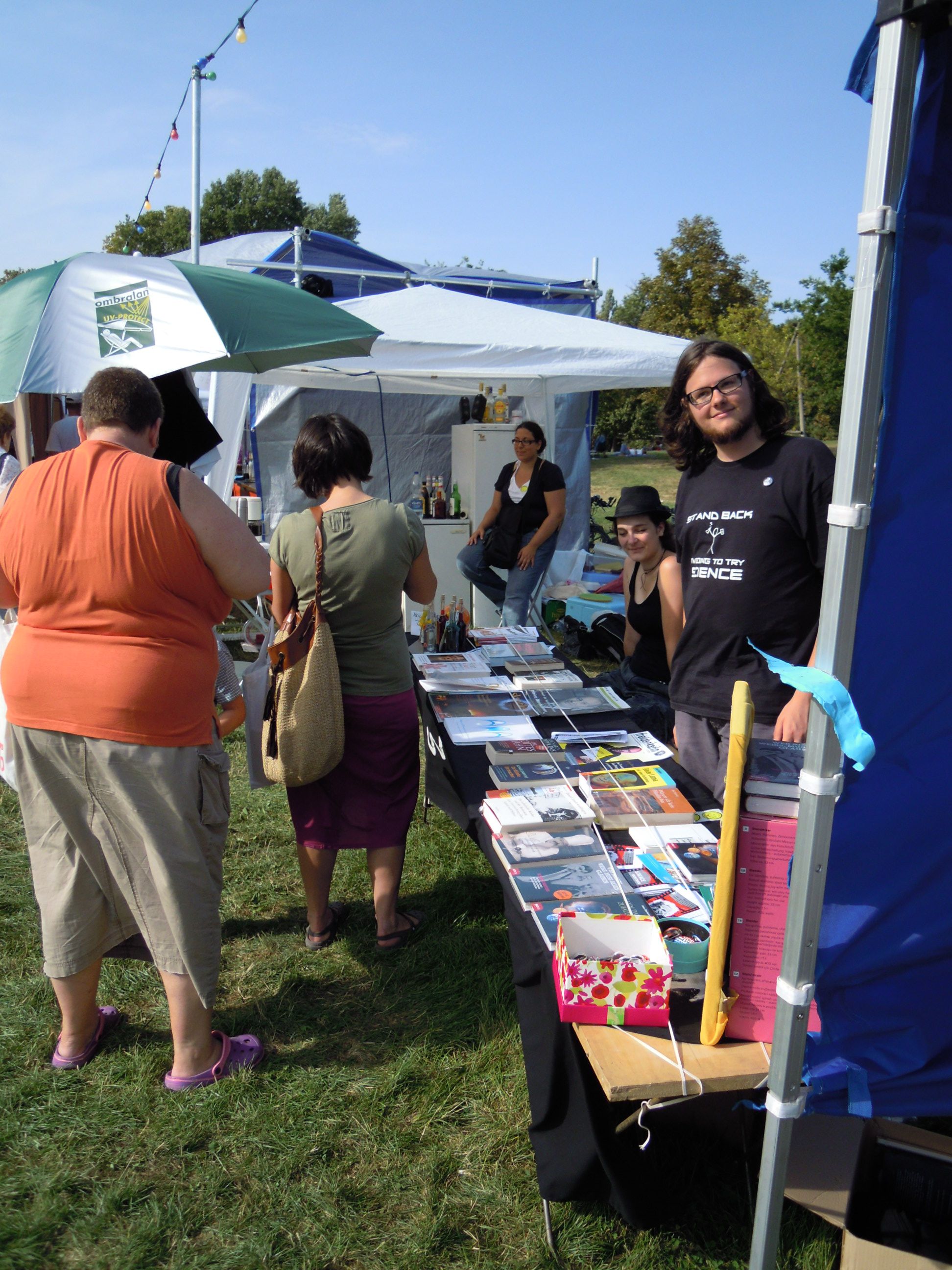 Etwas spät aber doch gibts hier ein paar Eindrücke vom Volksstimmefest. Der Stand und die Bar waren in jeder Hinsicht erfolgreich. Vor allem freut es uns, dass die Bücher und Zeitschriften so gut angekommen sind. Wir hoffen, dass wir einige der vielen Leute mit denen wir in den beiden Tagen gesprochen und die Interesse an unserer Arbeit gezeigt haben, auch bei unseren Treffen wiedersehen werden.
